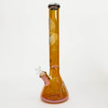 The classic beaker base allows for increased water capacity, providing superior filtration, while the built-in ice catcher cools each hit for a smoother, more enjoyable experience. The elegant amber glass finish combined with detailed artwork makes this bong a standout display piece as well as a reliable daily driver.